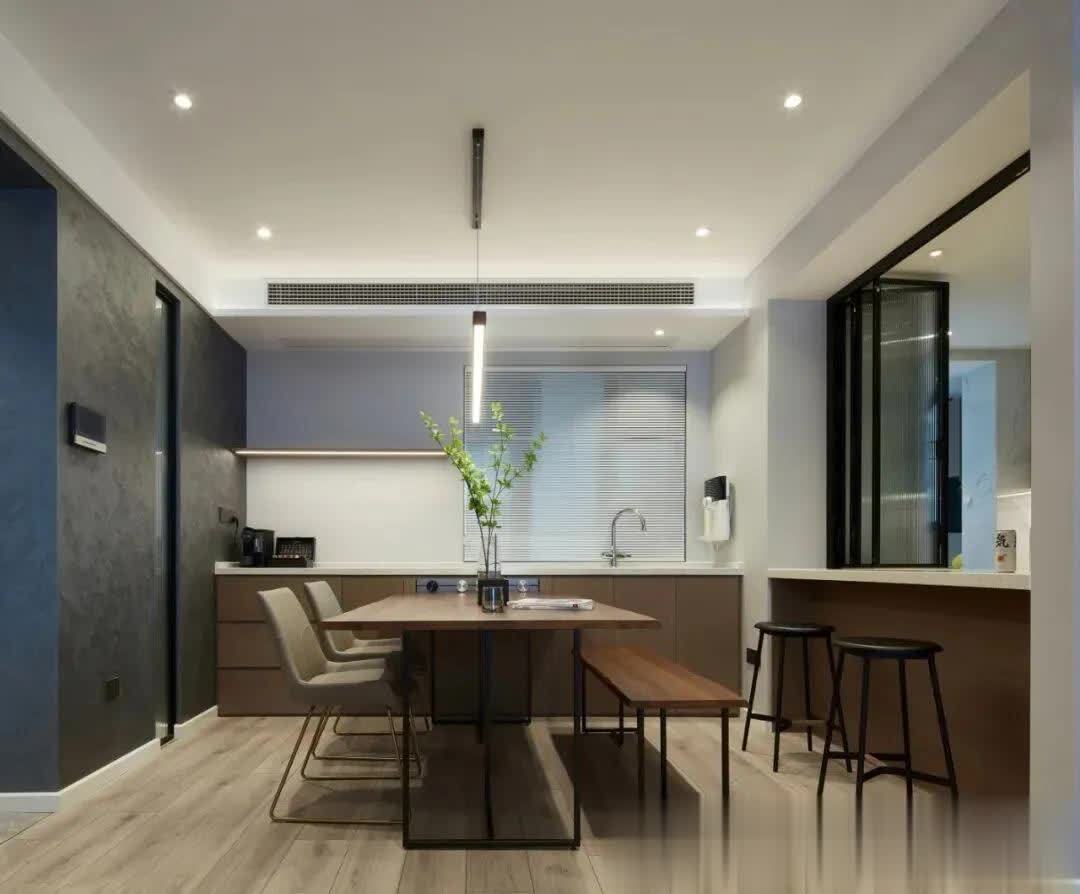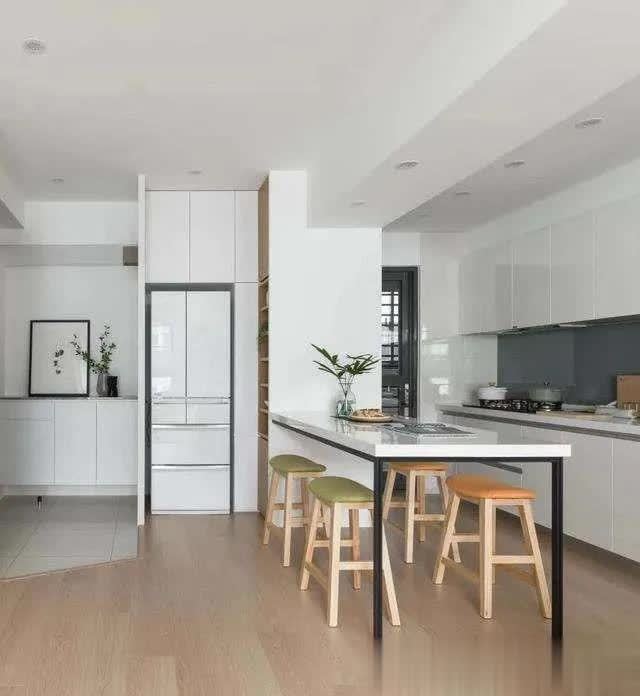 ▲若是家里空间皆小,餐厅无法布局,厨房也小,通盘不错厨房墙体砸掉,餐厨一体昌盛空间的通透,同期放大空间,前提是一定给与洞开厨房