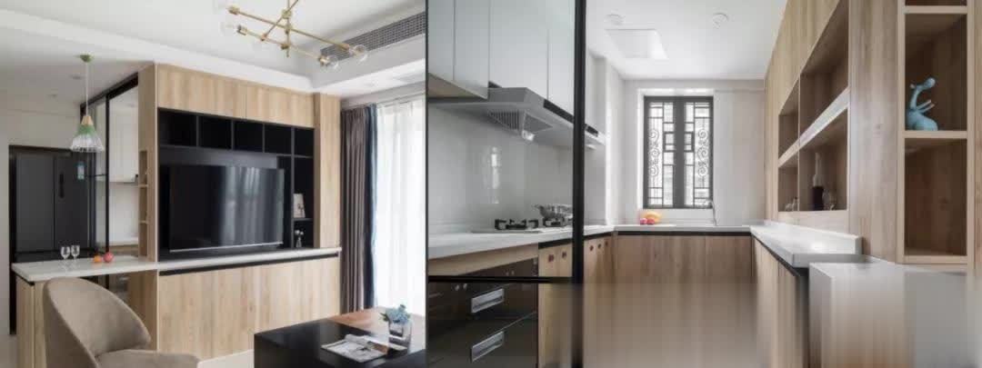 ▲如图若是是小户型,相称刚需,又念念要更多收纳,那么客厅与厨房的墙体就不错废除,终了双面柜的收纳;厨房收纳更多了,电视墙收纳也终光显,同期并不影响任何功能,空间获得进一步普及,何乐不为呢?比权量力,利远宽绰于弊,笃定废除。