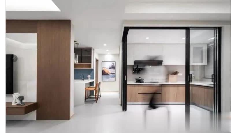 ▲相称念念要洞开式厨房,关联词又纠结油烟问题,获胜把墙体砸掉,采取联动玻璃门代替,通盘不错享受视觉的洞开,同期根绝油烟的膨胀。