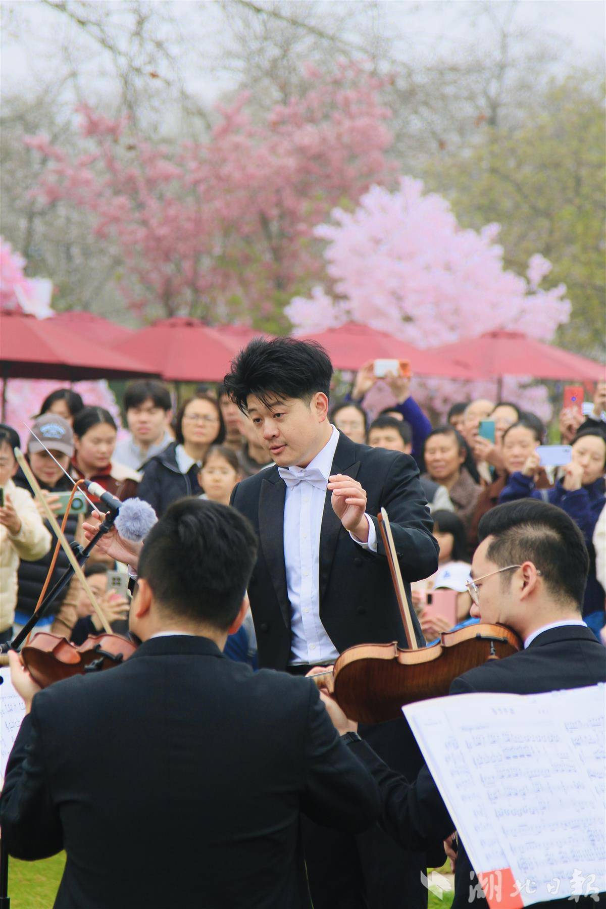 本次献技无需额外购票,旅客参加东湖樱花坛即可免费凝听。献技现场,粉樱摇曳、乐声摇荡,武汉爱乐乐团挨次演绎《春节序曲》《茉莉花》《花好月圆》等目擩耳染的经典曲目,旋律婉转摇荡,与满园春色瑕瑜分明。献技上升处,全场不雅众在交响乐伴奏下王人唱《我和我的故国》,歌声与乐声交汇,现场歧视昂然慈祥、参与度清翠,成为樱花坛里一王人动东说念主的文旅风景线。