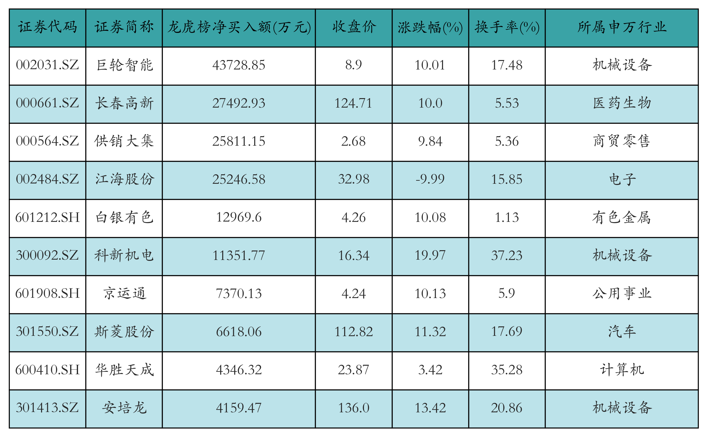 昨日龙虎榜交易部净买入额前10笃定见下表: