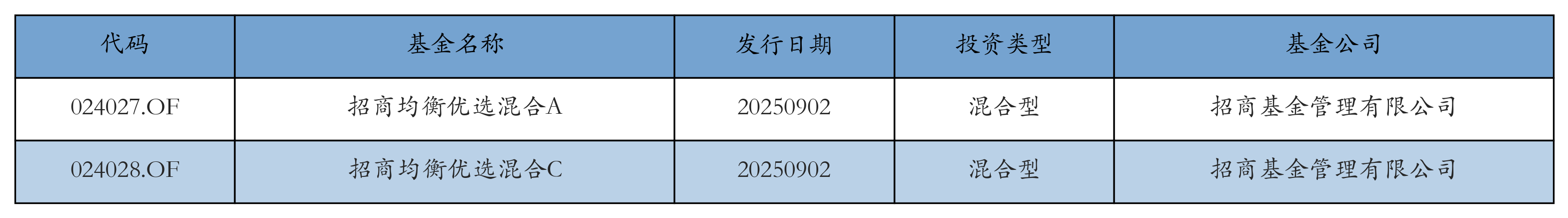 昨日有2只新基金刊行,区分为:招商平衡优选混杂A、招商平衡优选混杂C,笃定见下表: